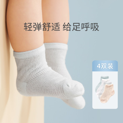 【4双装】新生儿袜子婴儿袜子春夏薄款宝宝网袜儿童袜子地板袜