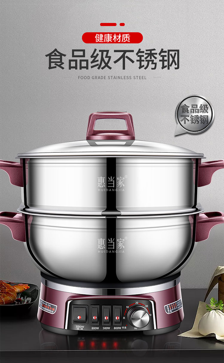 定时不锈钢电热锅多功能家用电煮锅煎炸蒸煮炒一体电蒸锅