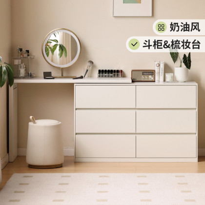 实木化妆桌奶油风伸缩梳妆台简约斗柜白色化妆台Y211D01
